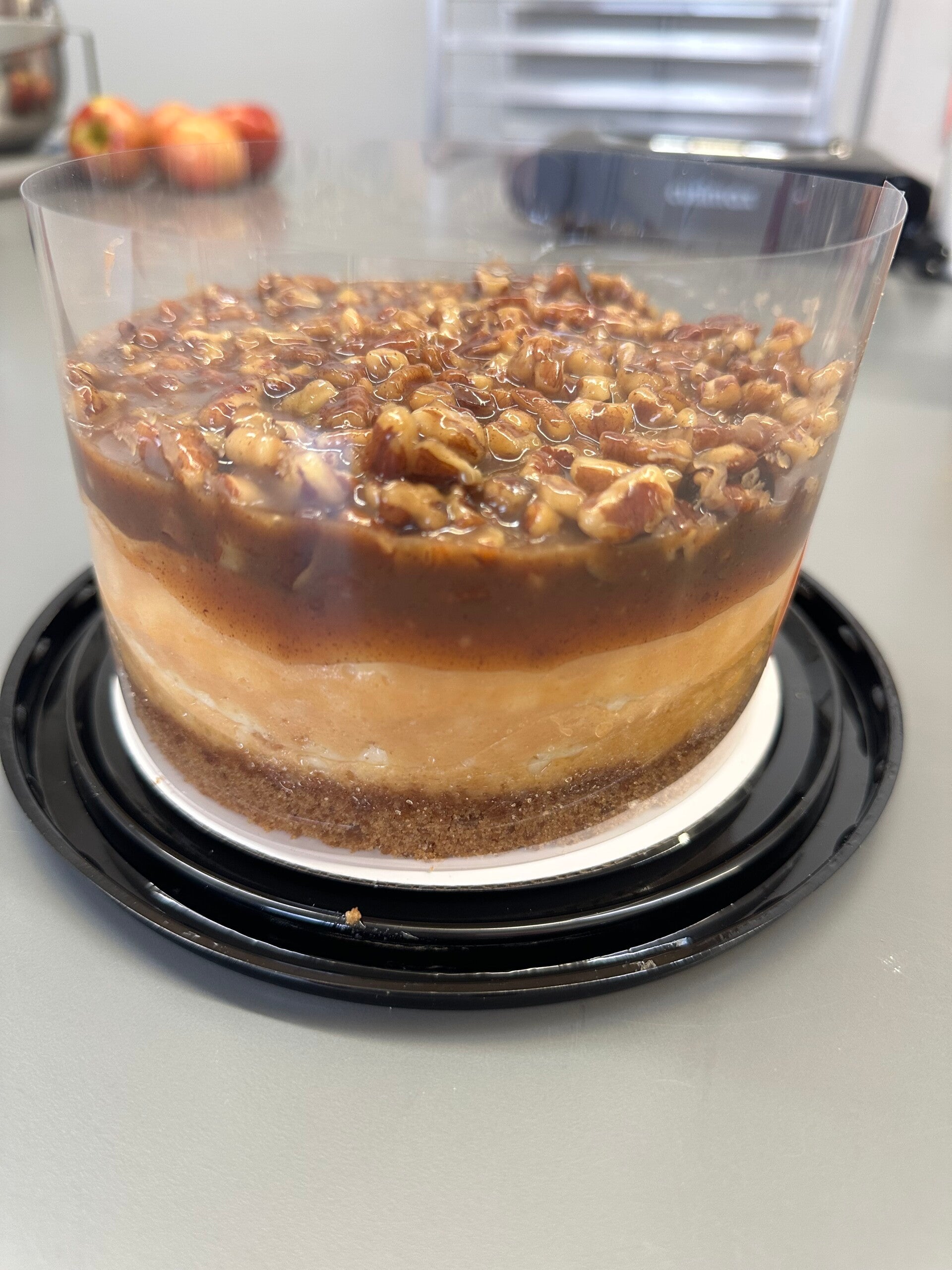 This is a creamy vanilla cheesecake topped with a pecan pie topping. It's the best of both worlds. Perfect for that holiday treat or any occasion.